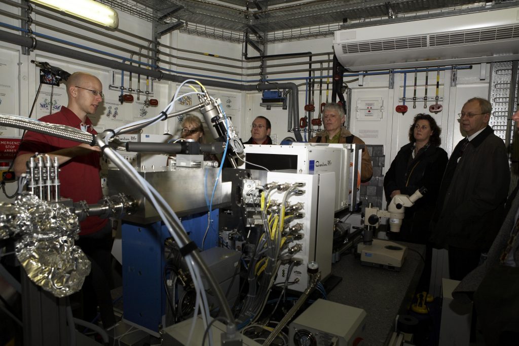 Team Leader Andrew McCarthy shows EMBL Council the Grenoble beamline in 2006. Credit: Marietta Schupp/EMBL