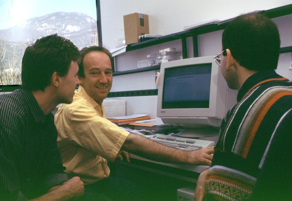 Christoph Müller conferring with colleagues at EMBL Grenoble in 1998. Credit: EMBL