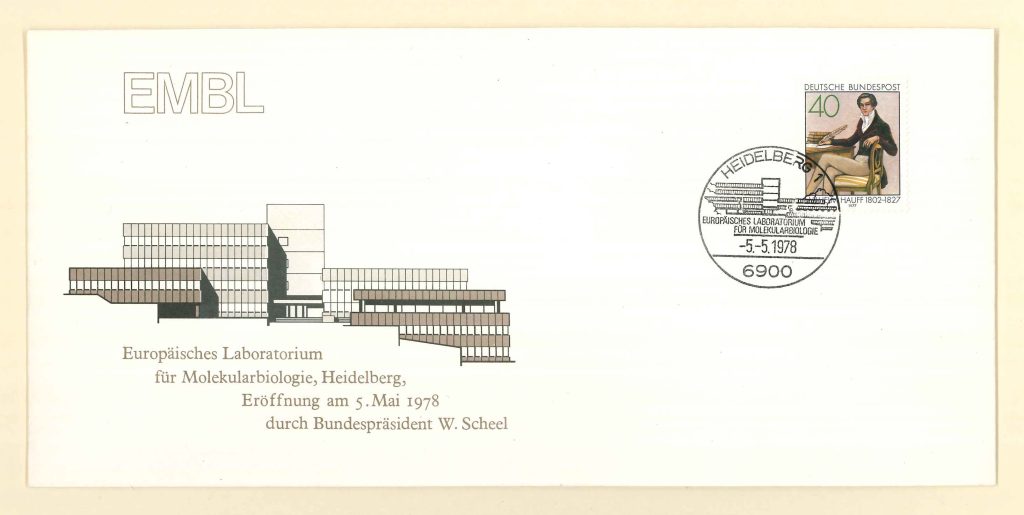 Inauguration of the Heidelberg Laboratory envelope and cancellation stamp. From the EMBL Archive. Keith Williamson material,1978-2005. DE 2324 P-WIL-3
