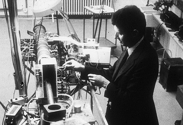 Ken Holmes adjusting the first ever X-ray beamline at DESY. Credit: EMBL