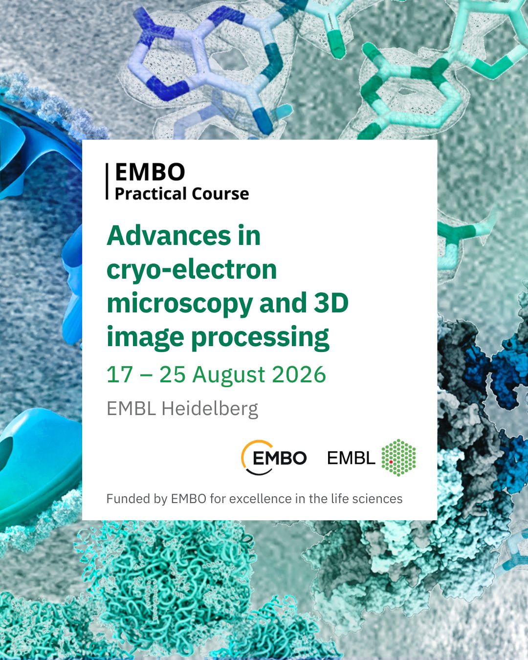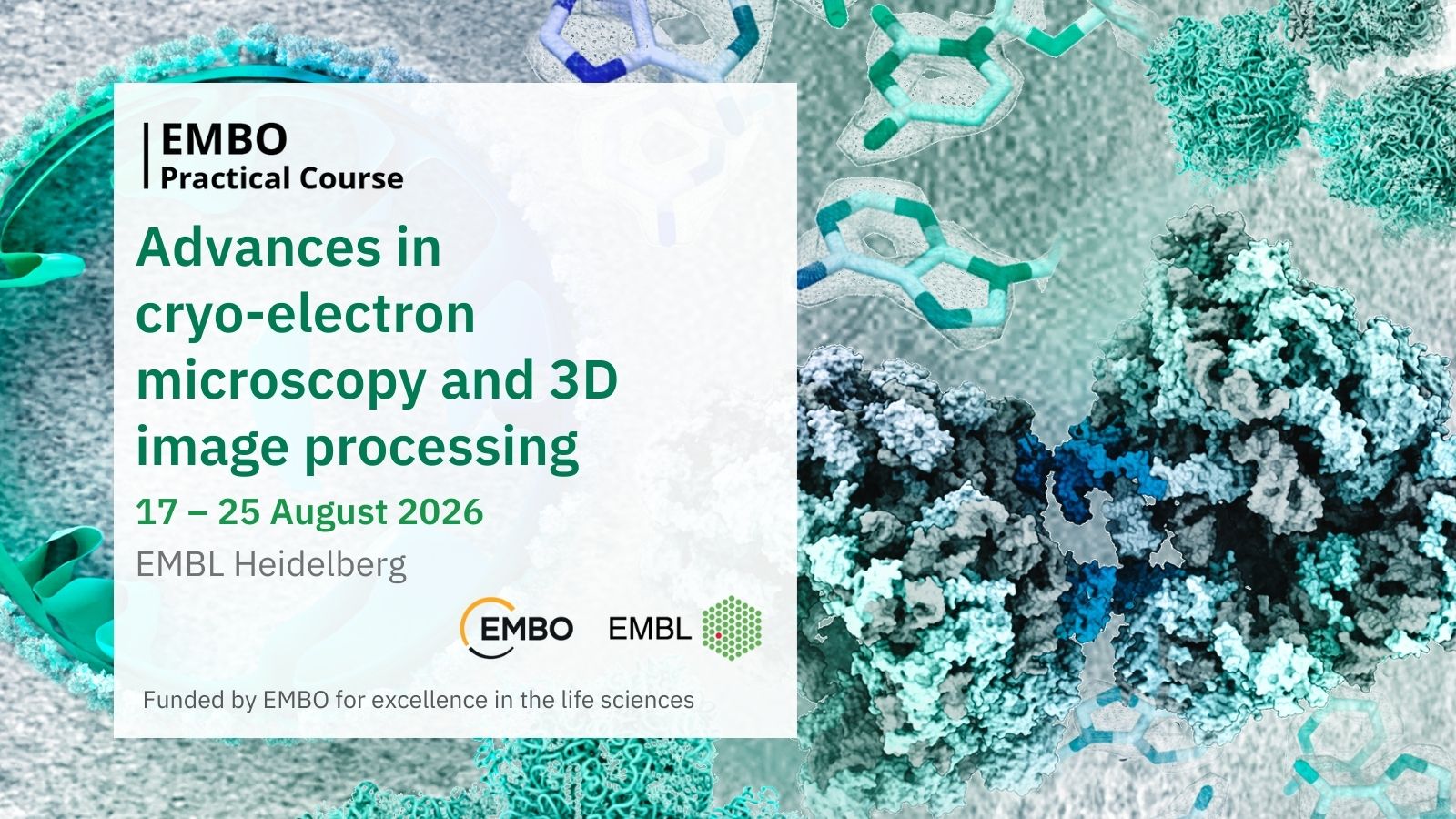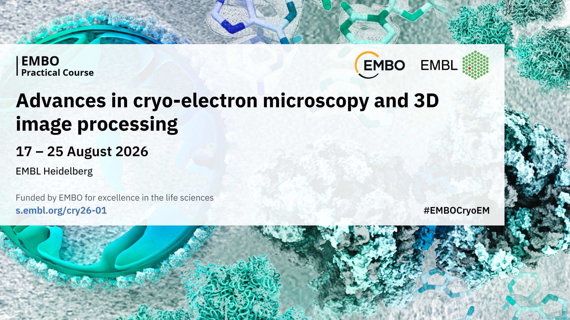 Designed for PhD students and postdoctoral researchers with basic experience in cryo-EM and 3D image processing, the course will equip participants with the expertise to integrate state-of-the-art single-particle analysis and tomography into their research. It will also prepare them to critically discuss their knowledge with peers and ultimately contribute to the development of novel cryo-EM methodologies beyond the current state of the art.