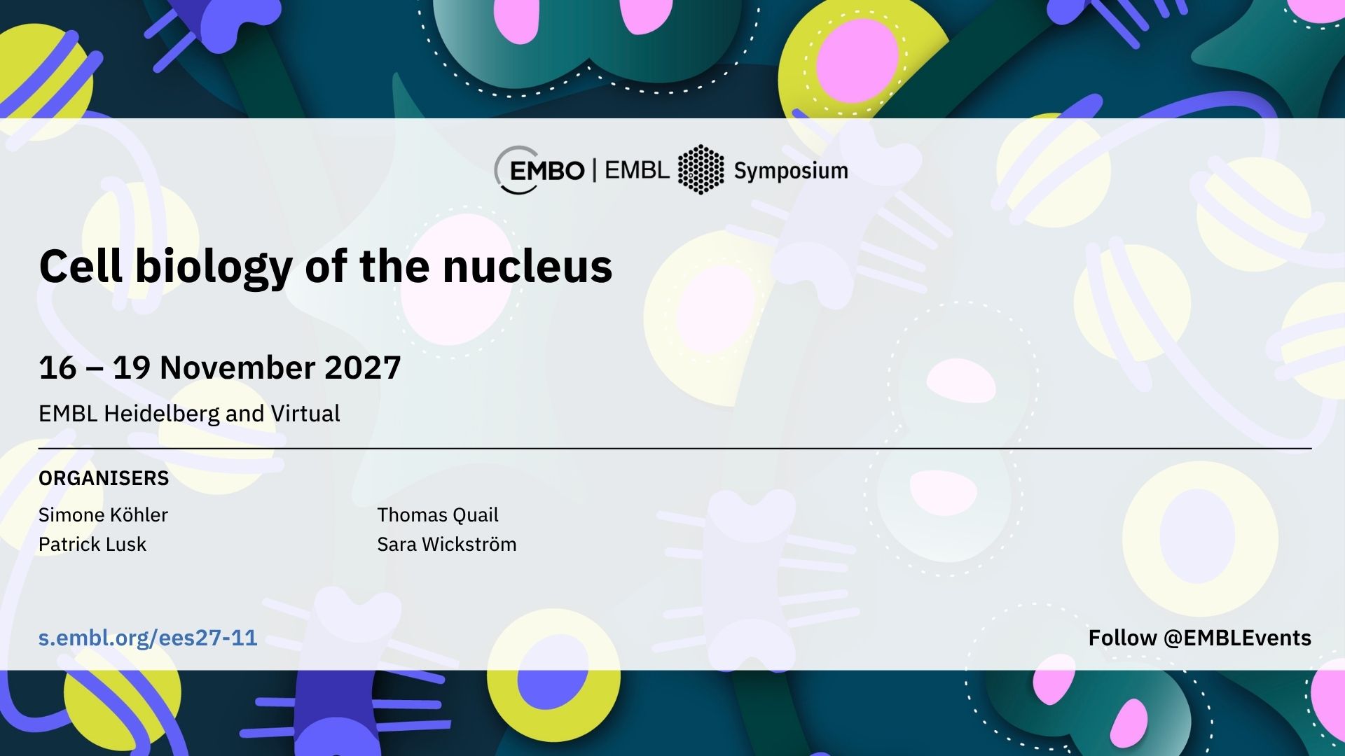 The nucleus houses the genome and plays a central role in all cellular processes. Over the last decade, advances in modern genomics have provided important insight into 3D genome organisation but the underlying cell biology of the nucleus is often not considered. The nucleus is not just a passive scaffold for the genome: it is a highly dynamic organelle with a suite of unique mechanisms that help control its biochemical compartmentalization, its integration into both intra and extracellular mechanical networks, and its response to pathological and environmental insults. The goal of this conference is to showcase the cell biological mechanisms that define the nucleus as an organelle.