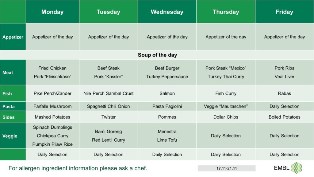 Menu from 17.11.25 – 21.11.2025