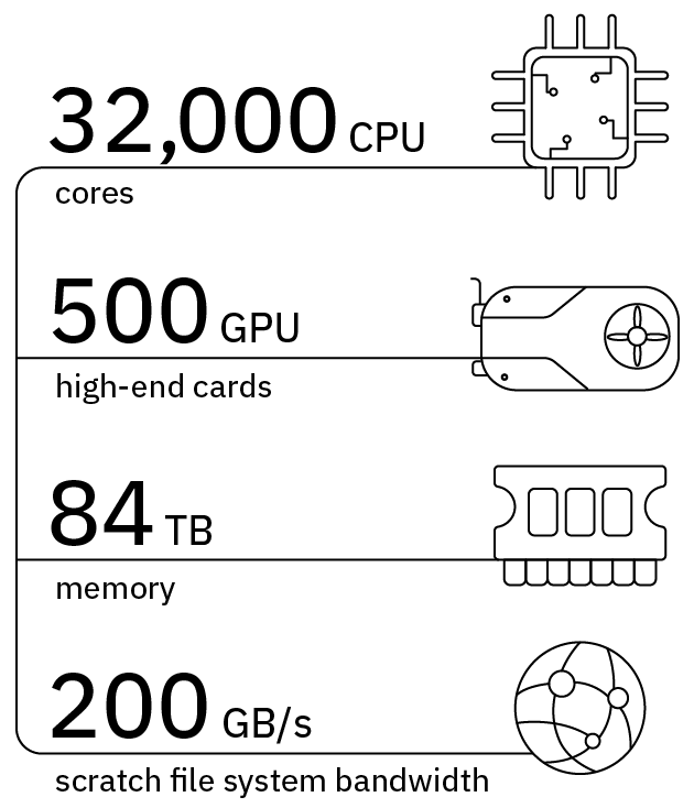 Scientific data analysis at EMBL to a large extent relies on access to high-performance computing. An increasing number of users, presently about 40% of all EMBL scientists, implement HPC as part of their data analysis workflows. In 2020 these users spent about 3300 CPU years spread across more than 24 million compute jobs using one of the key number crunching resources, the EMBL Heidelberg’s HPC cluster. This facility primarily supports the needs of local researchers but also offers capacity to the wider scientific EMBL community. Based on latest Intel and AMD technology this facility presently provides access to more than 32,000 CPU cores and a total RAM/memory of 84 TB. The cluster further integrates compute power using GPU hardware, based on recent Nvidia Ampere hardware and adding about 680 TFLOPS of floating point performance. The underlying parallel file system is designed to offer about 200GB/s of bandwidth to support the massive I/O needs found with data intensive bioinformatics and computational biology HPC workloads.