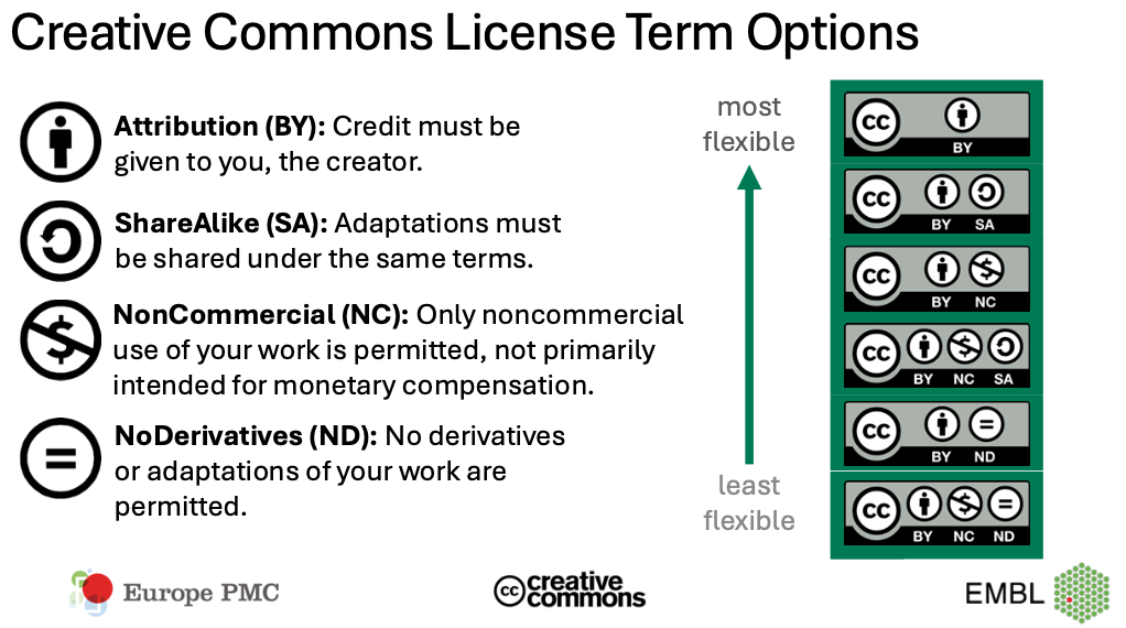 With this year’s theme being ‘who owns our knowledge?’ it is important for authors to be informed about copyright and their rights. It is also important to acknowledge that by picking a more restrictive license, it can limit the impact of your work and the ability for scientists like those at EMBL to use that work in their research.