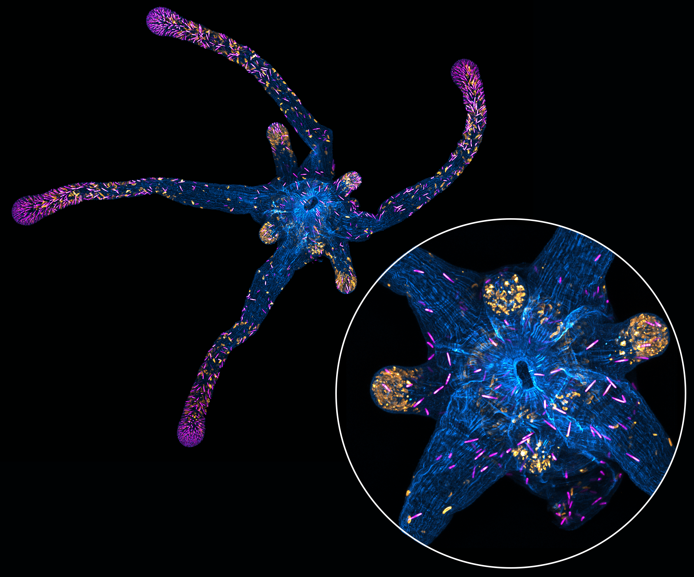 Neu wachsende Tentakel mit Nesselzellen einer Anemone