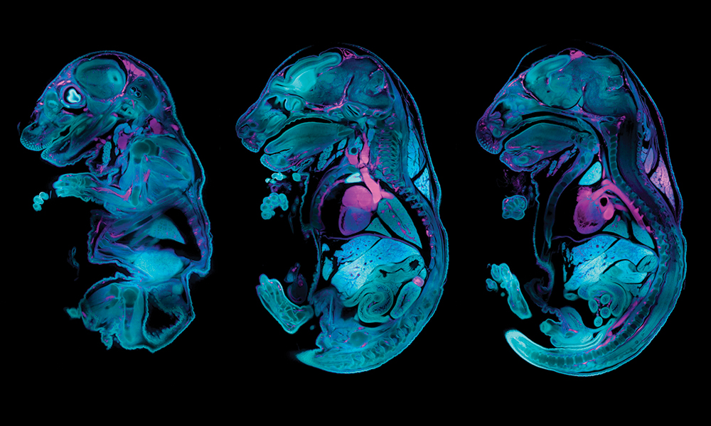 Mithilfe der Lichtblatt-Mikroskopie durchleuchtetes Mausembryo