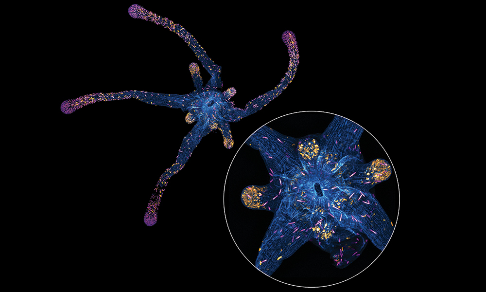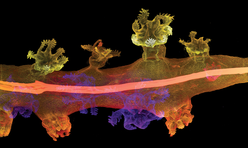 Im Mittelpunkt unserer Ausstellung befindet sich eine 40 m2 große LED-Wand — unser “Window of Wonder” — auf der Mikroskopiebilder in allen Farben leuchten. Dieses Jahr erneuern wir unser Display im Zuge des WoW-Awards: Um ihr Bild auf der LED-Wand zu präsentieren, haben Wissenschaftler*innen des EMBL und externe Mitarbeiter*innen ihre besten Mikroskopiebilder eingereicht.