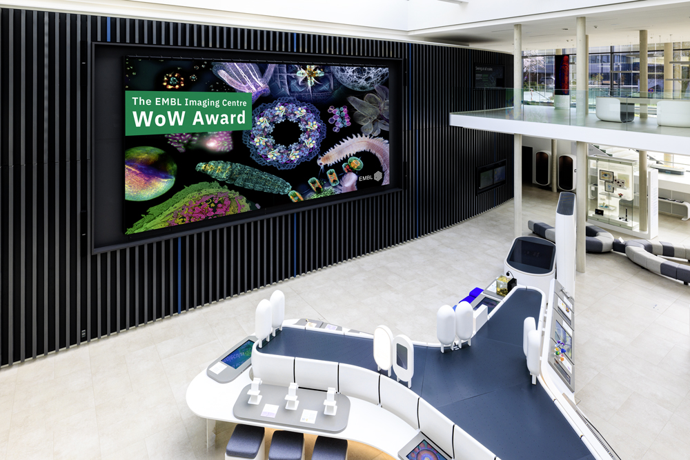 Im Mittelpunkt unserer Ausstellung befindet sich eine 40 m2 große LED-Wand — unser “Window of Wonder” — auf der Mikroskopiebilder in allen Farben leuchten. Dieses Jahr erneuern wir unser Display im Zuge des WoW-Awards: Um ihr Bild auf der LED-Wand zu präsentieren, haben Wissenschaftler*innen des EMBL und externe Mitarbeiter*innen ihre besten Mikroskopiebilder eingereicht.