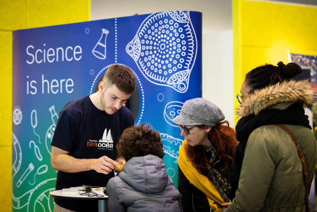TREC coordinated a widespread outreach initiative to share the science behind the expedition. Pictured here is an EMBL/TREC public outreach activity in Lorient, France. Credit: Kinga Siring/EMBL